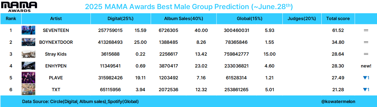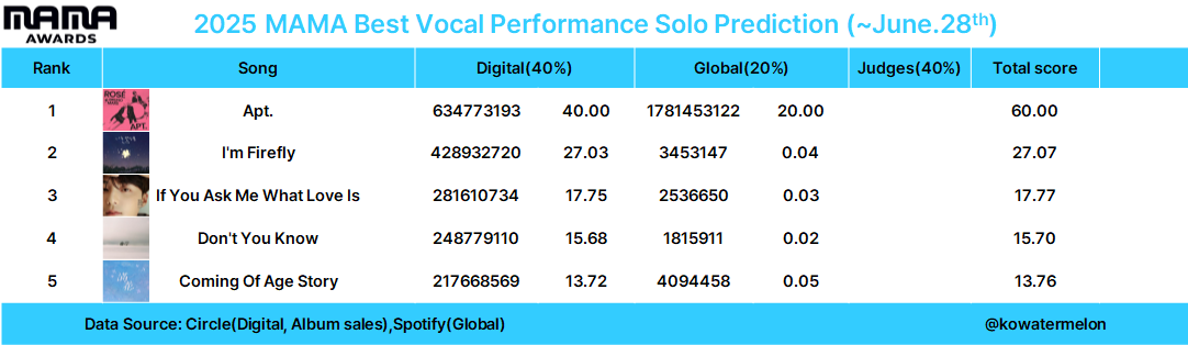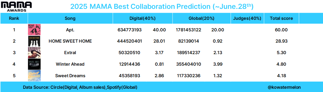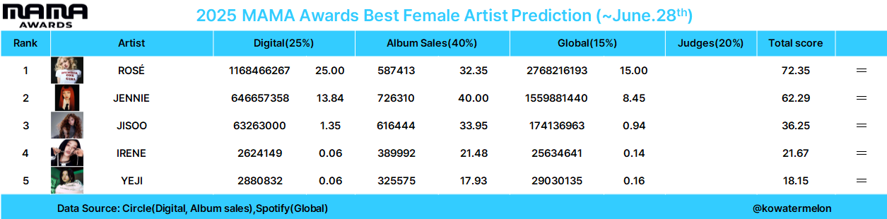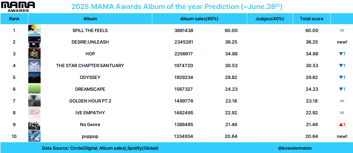 | 2025 MAMA Awards 예측(~8월30일) (1) | 2025.09.01 |
