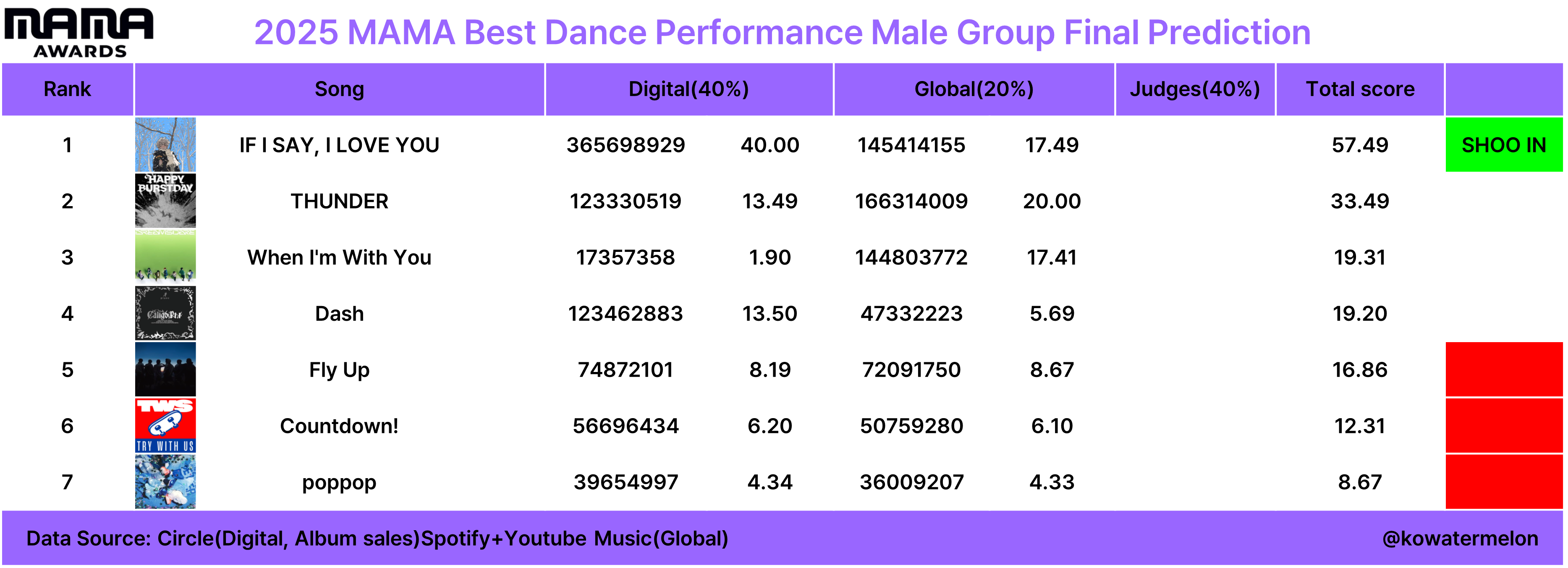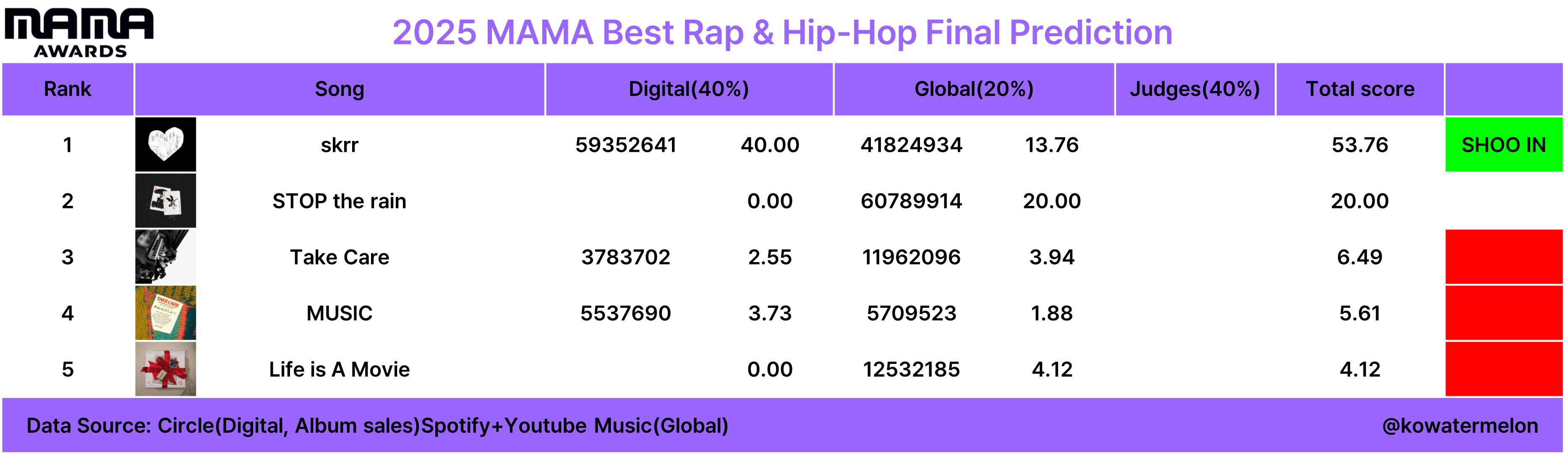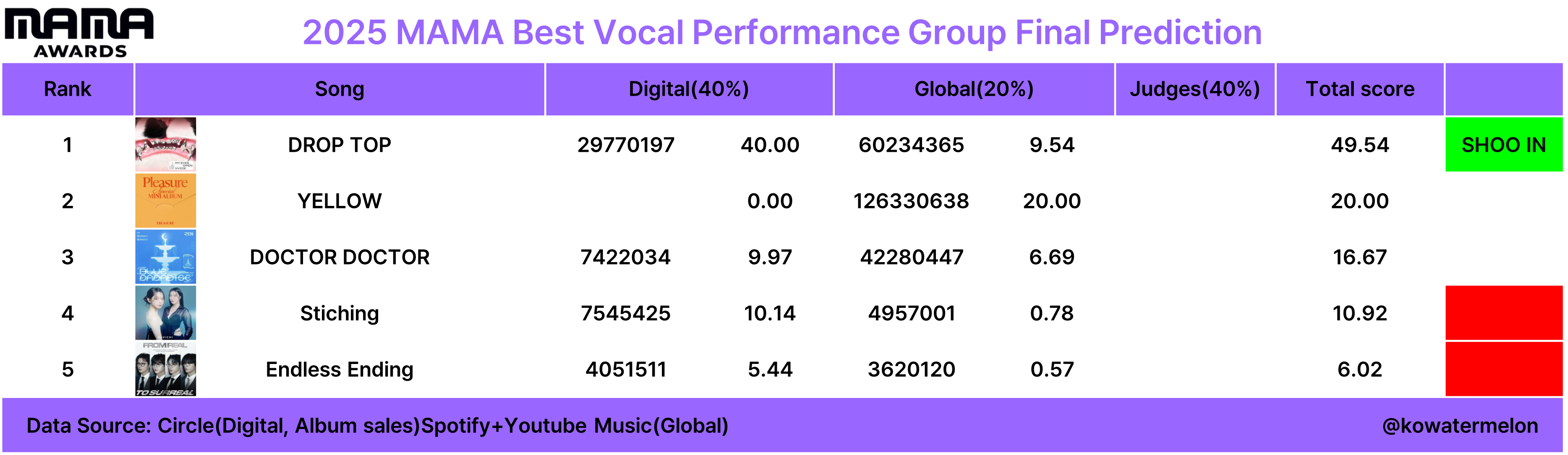 현재 1위: 미야오-DROP TOP (수상유력)