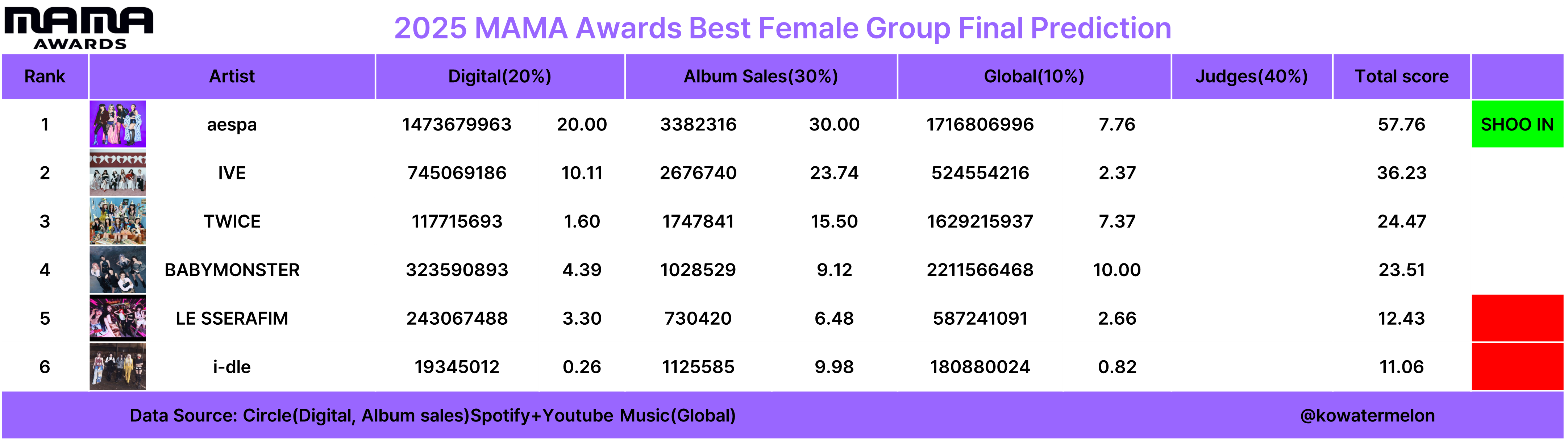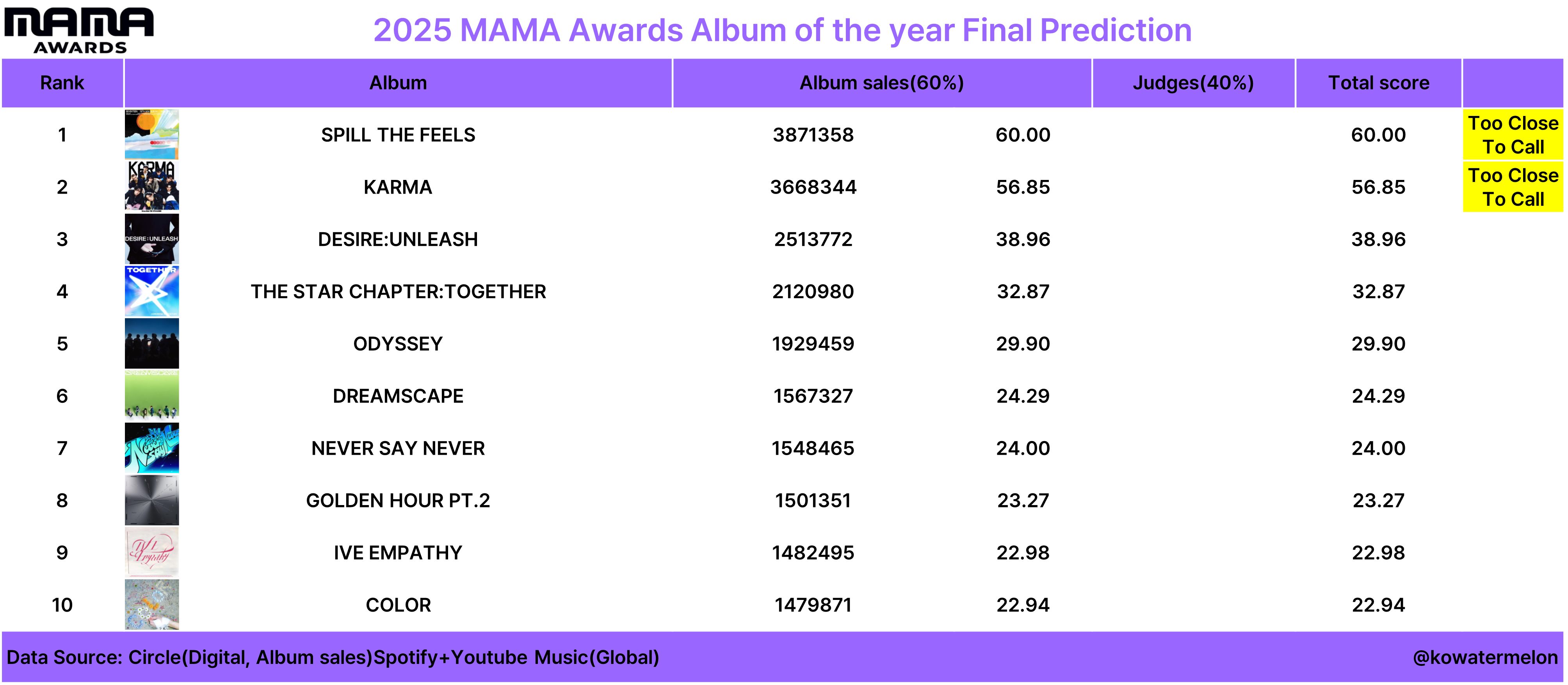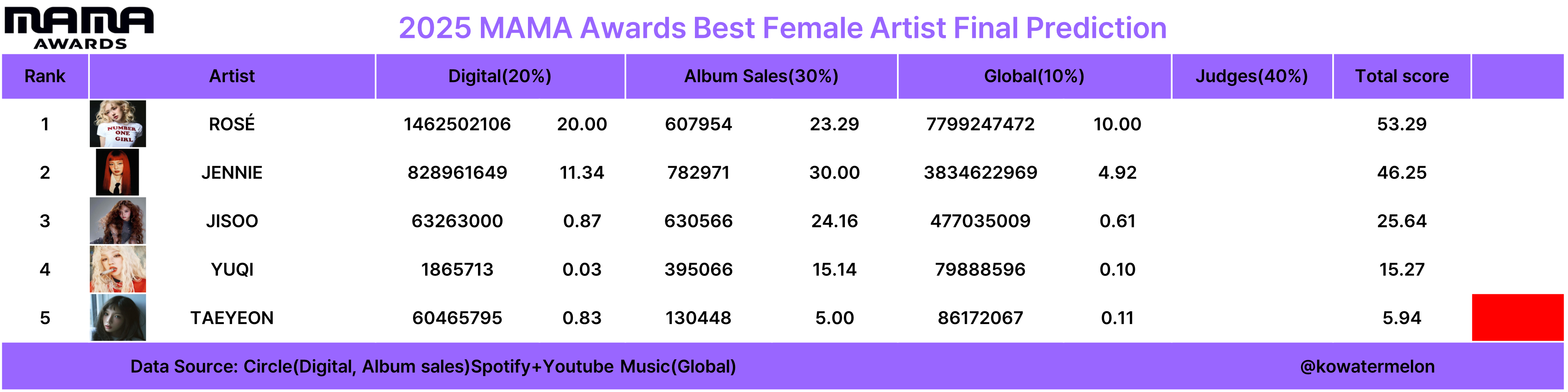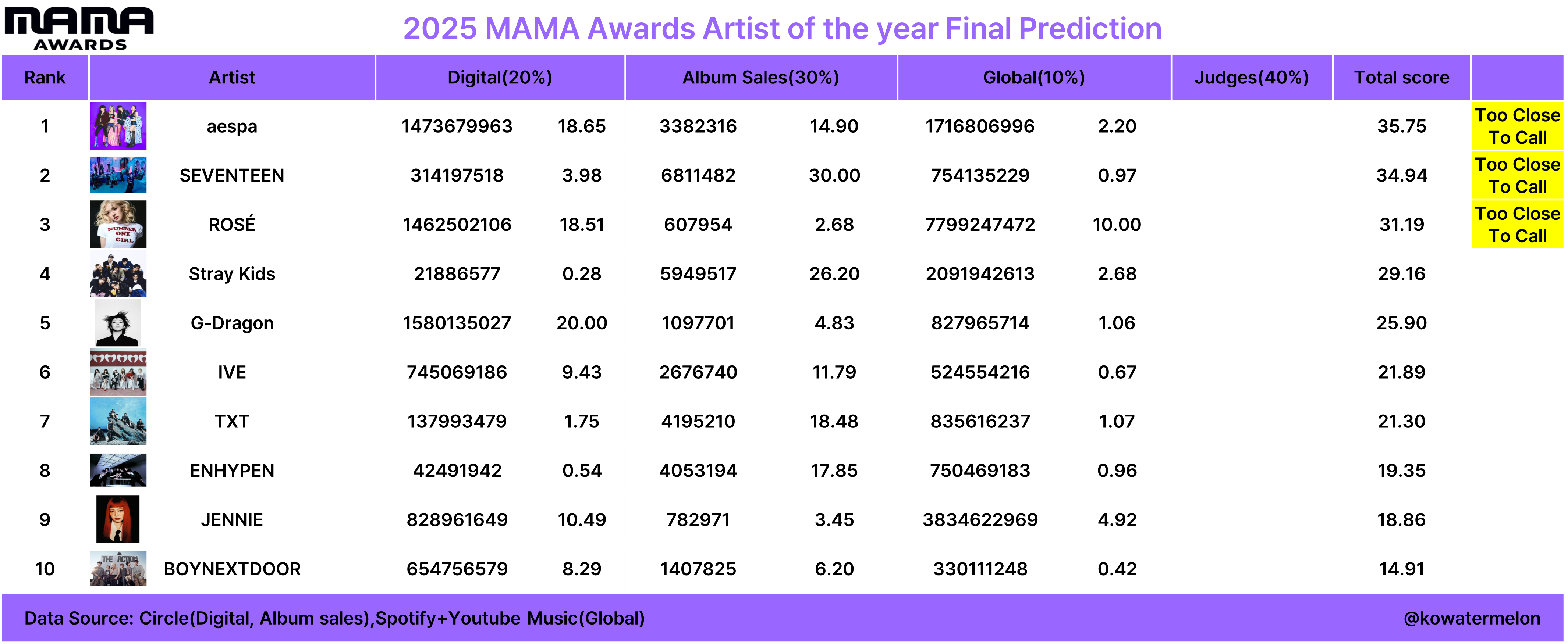 오늘은 2025 MAMA 최종예측을 업로드할 생각입니다.