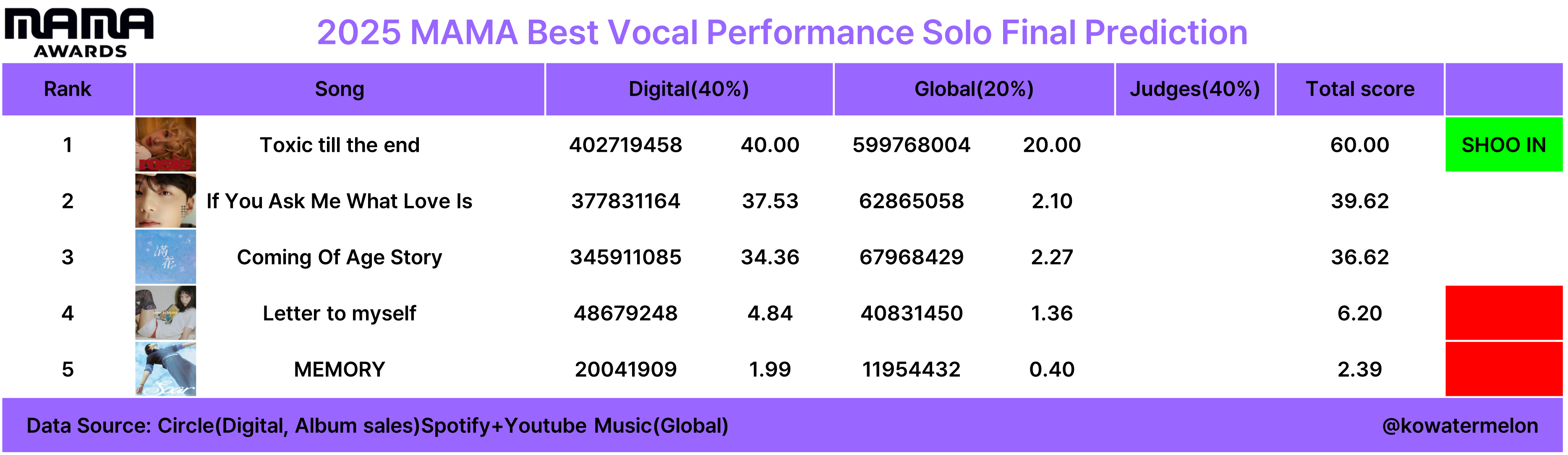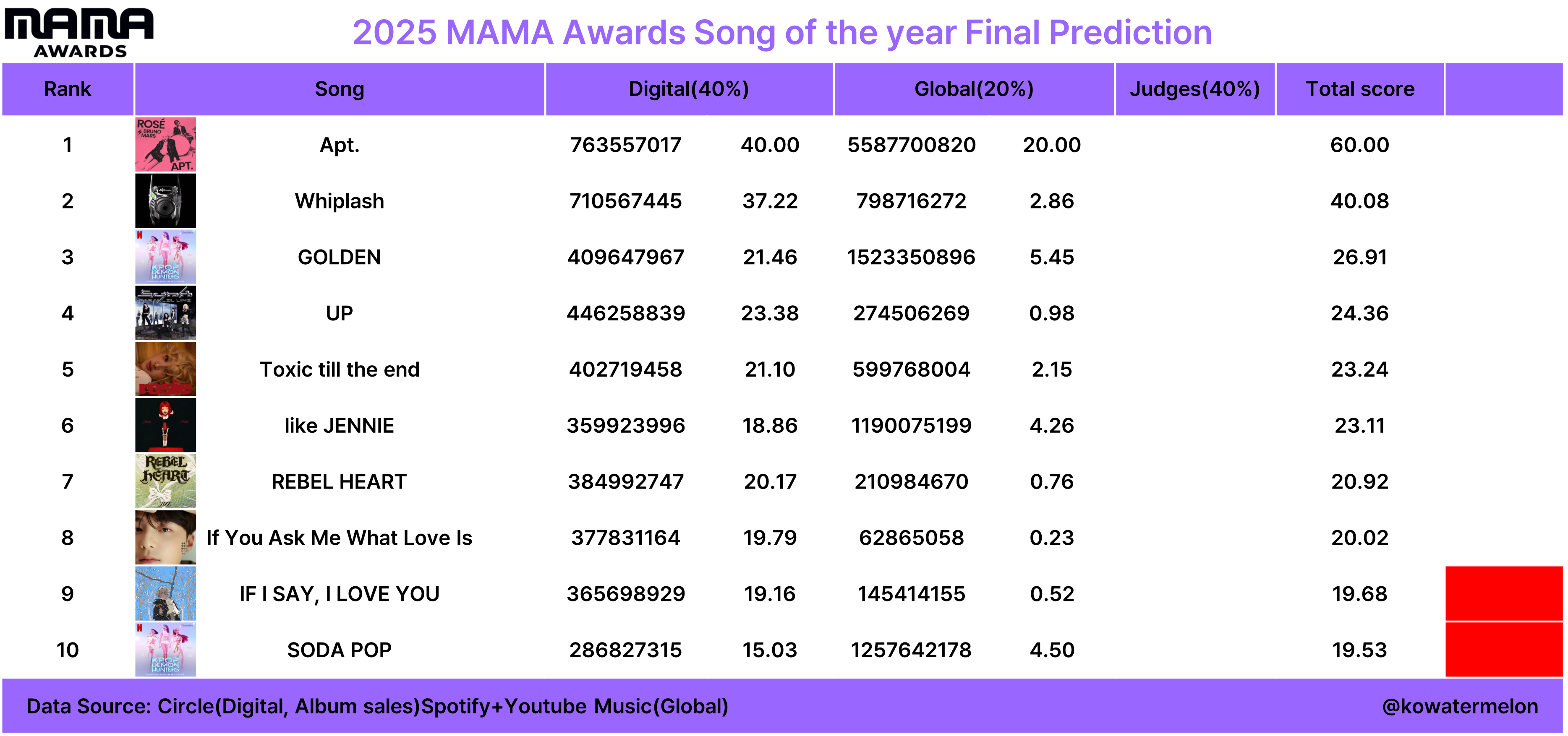 현재 1위: 로제-Toxic till the end (수상유력)