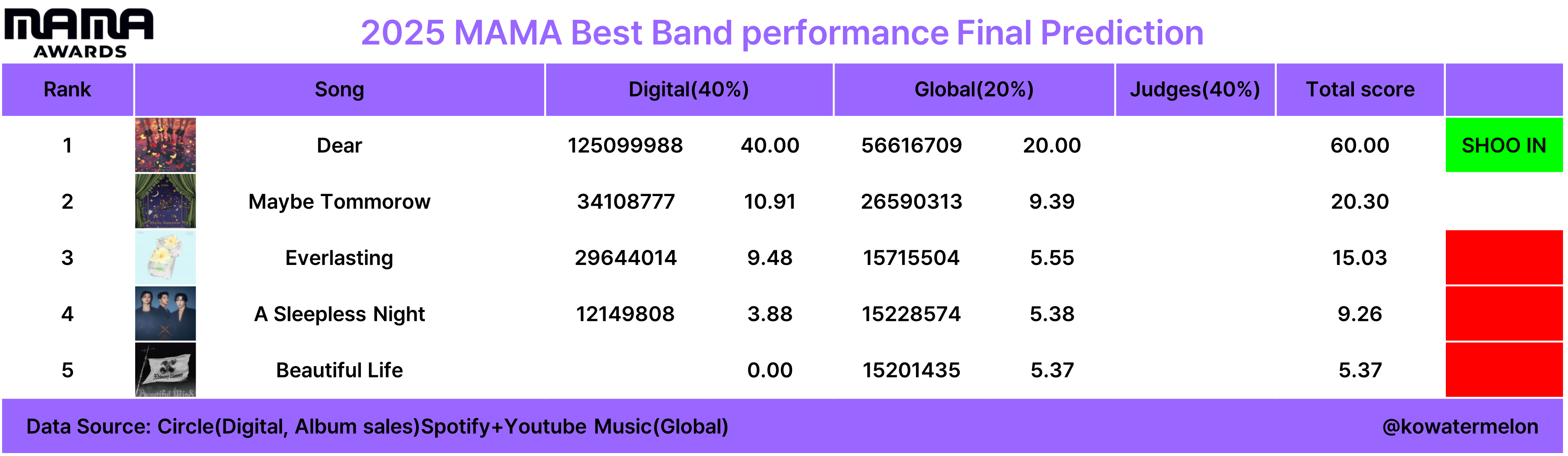 | 2025 MAMA Awards 예측(~8월30일) (1) | 2025.09.01 |