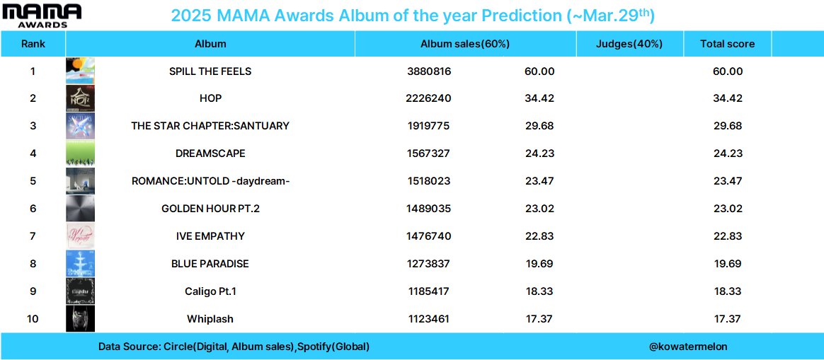 | 2025 MAMA Awards 예측 (~5월31일) (0) | 2025.06.01 |
