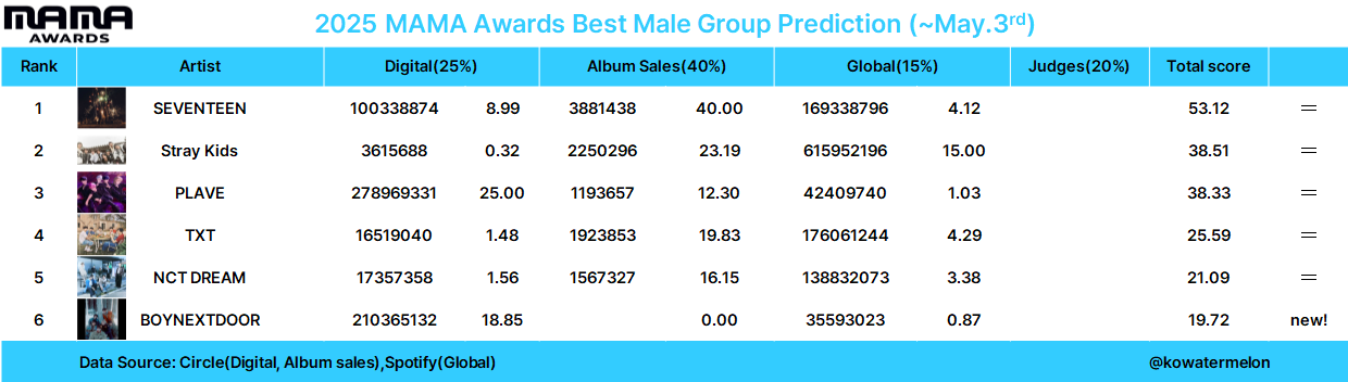 | 2025 MAMA Awards 예측 (~5월31일) (0) | 2025.06.01 |
