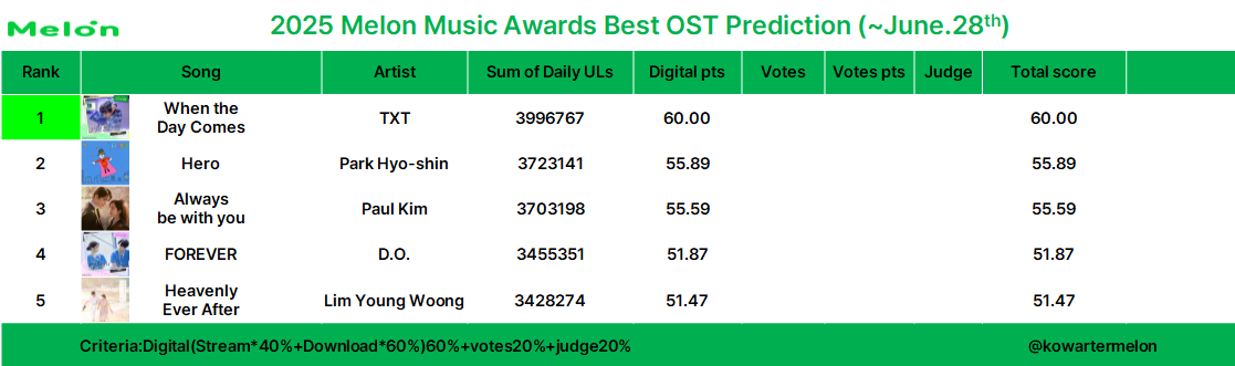 | 2025 멜론뮤직어워드 예측 (~5월31일) (2) | 2025.06.01 |